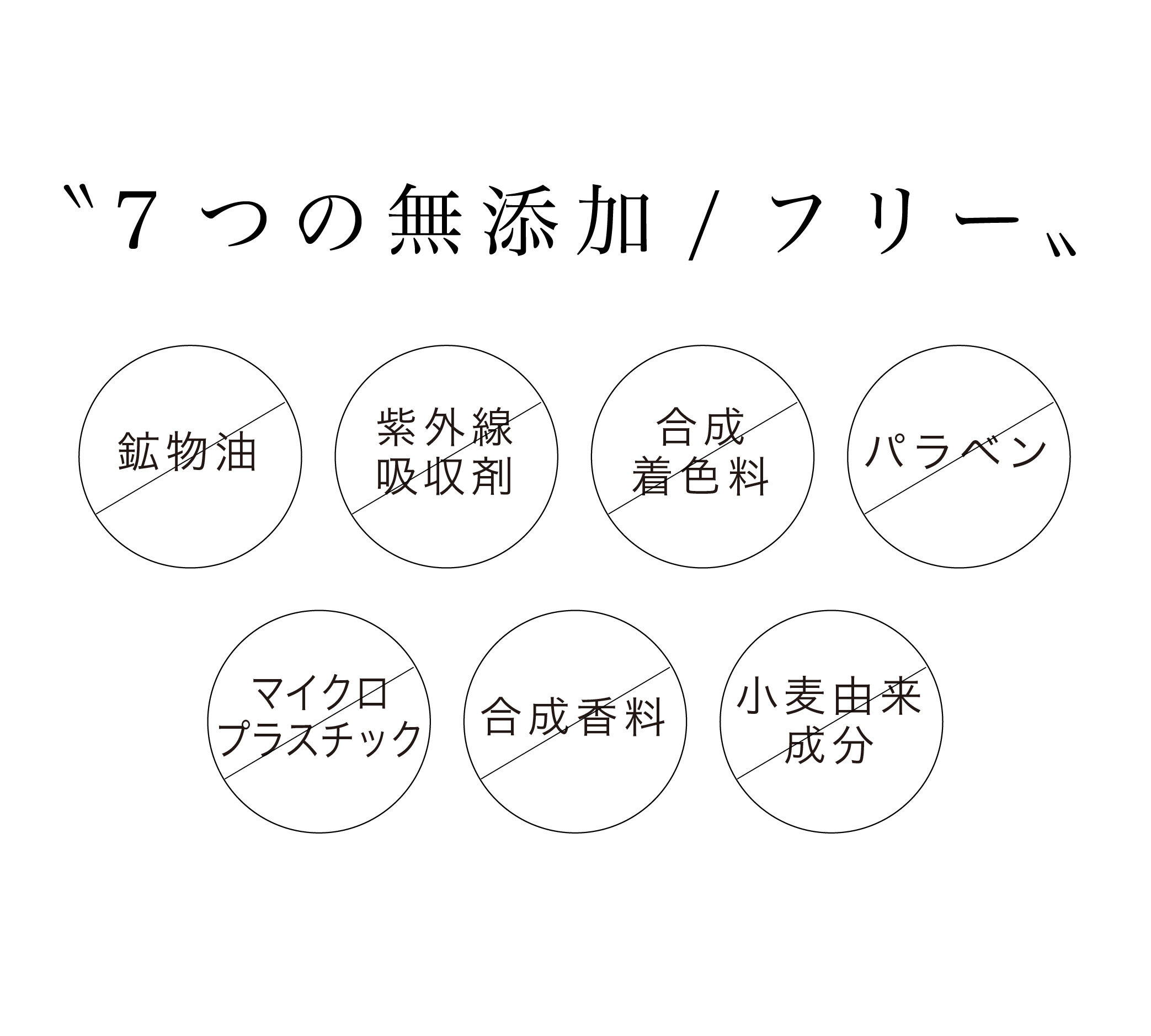 鉱物油・紫外線吸収剤・合成着色料・パラベン・マイクロプラスチック・合成香料・小麦由来成分