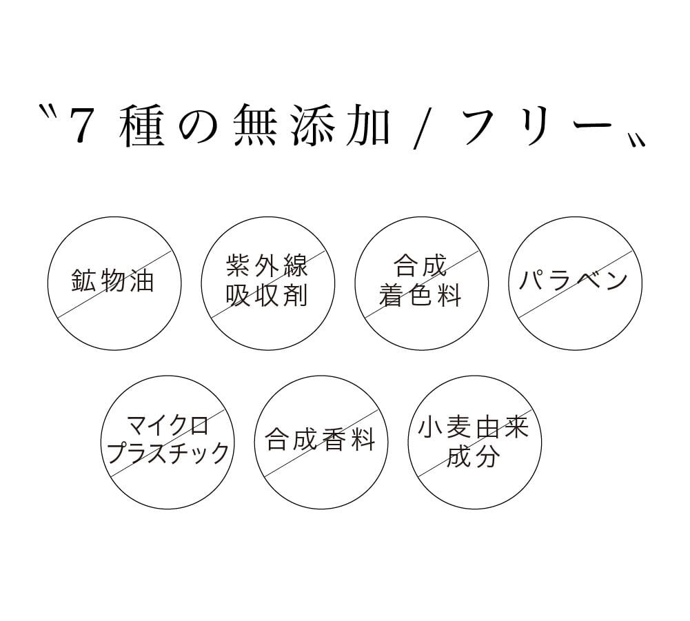 鉱物油・紫外線吸収剤・合成着色料・パラベン・マイクロプラスチック・合成香料・小麦由来成分